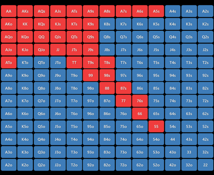 You would possibly use a linear vary when going through opponents who name an excessive amount of. In these instances, it’s greatest to boost with all of the fingers that carry out properly postflop, from A-A and Ok-Ok down by means of fingers like A-J suited and pocket 9s.
