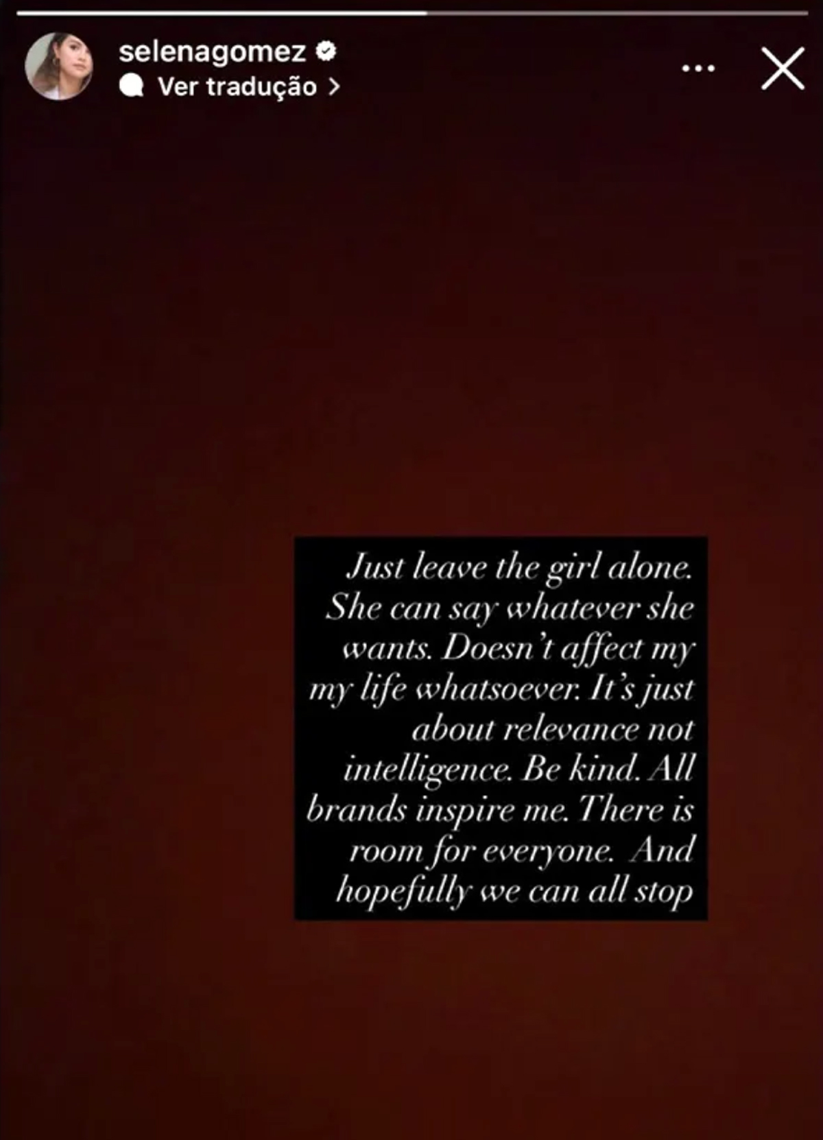 Now, Selena is addressing the shade from Hailey! The Wizards of Waverly Place alum took to Instagram Tales on Friday night time to say:
